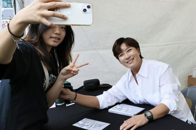 ▲ 용인특례시 '스포츠 스타와 함께하는 시민 참여 축제'에서 사인하는 박세리 전 감독 |