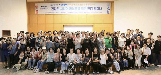▲ 28일 삼성생명과 함께하는 '우리동네 함께돌봄, 같이 건강' 세미나에 참석한 주민들이 기념 촬영하고 있다 |