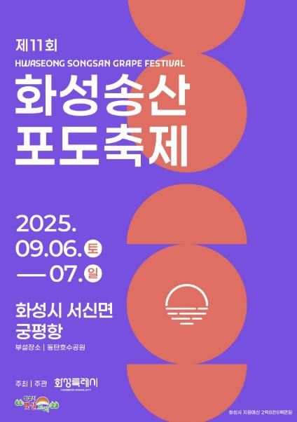 한편, 화성송산포도축제는 화성특례시가 주최·주관하며, 자세한 사항은 화성특례시 공식 인스타그램에서 확인할 수 있다.