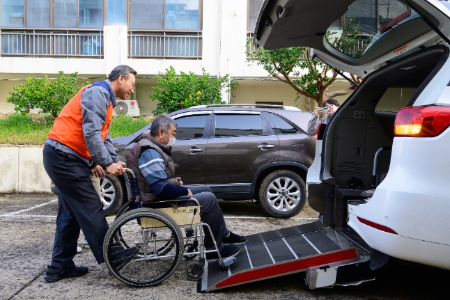 | ▲ 장애인 병원 동행 서비스 봉사하는 오순문 시장 |