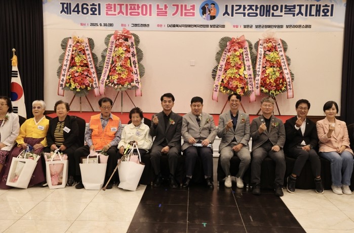 충북 보은군은 9월 30일 그랜드컨벤션에서 충북시각장애인복지연합회 보은군지회(회장 황호태) 주관으로 ‘제46회 흰지팡이 날 기념행사’를 성황리에 개최했다.