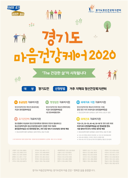 ‘경기도 마음건강케어’ 사업은 지난해 이재명 경기도지사 지시로 수립된 ‘경기도 중증정신질환자 치료지원 강화방안’의 하나로 전국 최초로 시행 중인 사업이다. 지난해 하반기에만 정신질환 초기진단비, 응급입원 본인부담금 등으로 1,215명에게 총 4억 원을 지원했다.