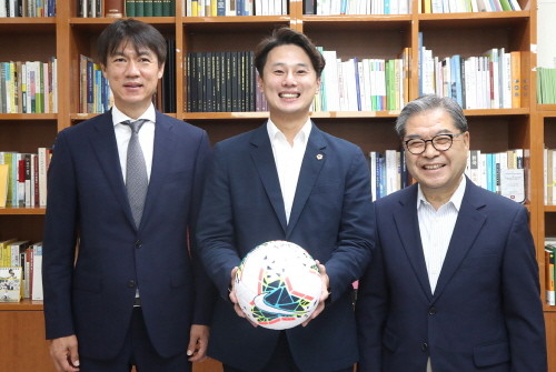 경기도의회 교육행정위원회 황대호 의원(더불어민주당)은 8일 경기도교육청 교육감실에서 개최된 도의회와 도교육청, 대한축구협회가 공동주관하는 ‘개방형 축구클럽’모델 발표회에 참석해 엘리트체육과 생활체육이 상생하는 체육환경 만들기에 주도적으로 나섰다.