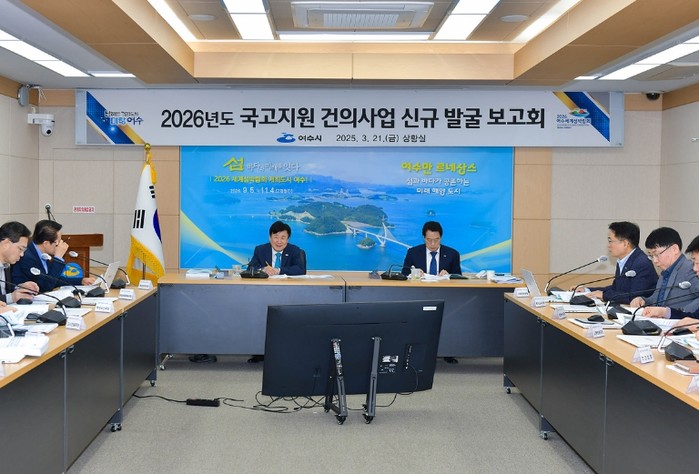 여수시는 민선 8기 역점사업의 원활한 추진을 위해 지난 21일 시청 상황실에서 2026년도 국고지원 건의사업 신규 발굴 보고회를 개최했다.