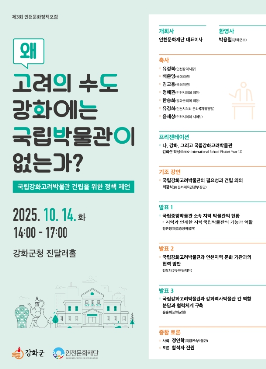 이번 포럼은 강화군과 인천문화재단이 공동으로 주최하며, 39년간 고려의 수도였던 강화에 국립박물관이 없는 현실을 논의의 출발점으로 삼고 있다.