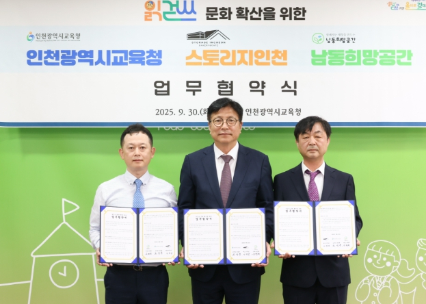 인천광역시교육청은 9월 30일 ㈜월미하이랜드(대표 이덕성) 스토리지인천, 남동희망공간(대표 유병희)과 함께 ‘읽걷쓰’ 문화 확산을 위한 업무협약을 체결했다.