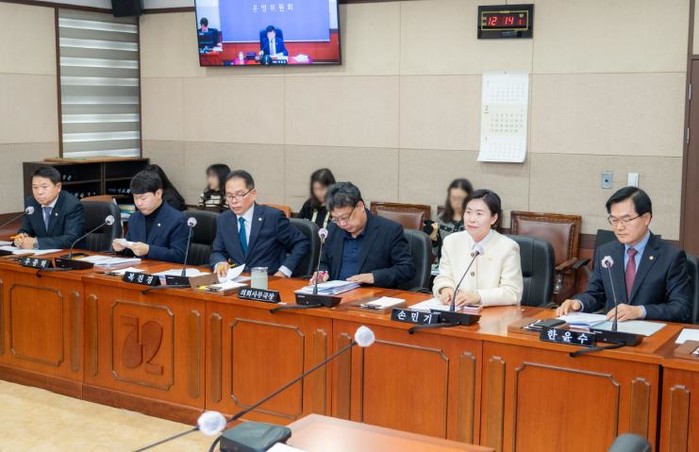 | ▲ 지난 19일 진행된 의원연구단체 심의에 참석한 대표 의원들(좌측에서 3번째 복진경 부의장, 우측에서 1번째 한윤수 의원, 좌측에서 1번째 황영각 의원, 우측에서 2번째 손민기 의원, 좌측에서 2번째 우종혁 의원) |