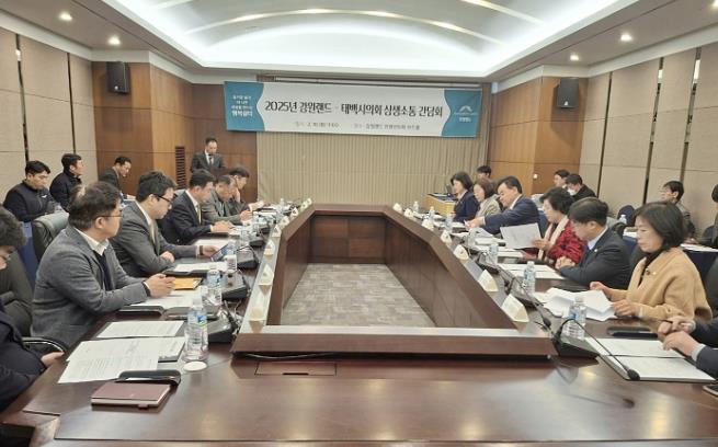 태백시의회는 18일 강원랜드 컨벤션타워에서 개최된 강원랜드와의 지역상생 간담회에 참석하여 지역 현안 및 합의사항에 대한 신속한 추진과 지역연계 사업에 대하여 논의했다.