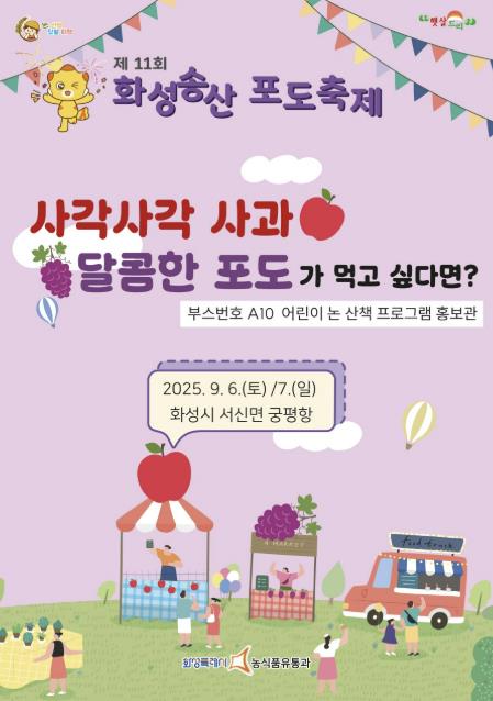 화성특례시가 오는 6일부터 7일부터 이틀간 제11회 화성송산포도축제에서 ‘사각사각 사과, 달콤한 포도가 먹고 싶다면? 구수한 밥이 먹고 싶다면?’을 주제로 ‘제10회 고사리 손 그림전시회 특별전’을 운영한다.