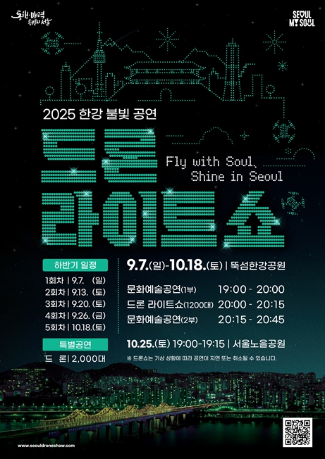 서울시는 이번 주말 7일 저녁 8시, 뚝섬한강공원에서 전 세계를 K-콘텐츠 열풍으로 이끈 ‘케이팝 데몬 헌터스’를 주제로 한 ‘2025년 한강 불빛 공연(드론 라이트 쇼)’의 화려한 막을 올린다고 밝혔다. 당초 9월 6일 시작 예정이었으나, 우천 예보로 인해 일정을 변경했다.