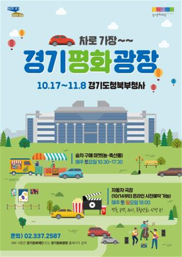 우선 ‘경기평화광장 자동차극장’은 10월 17일부터 11월 8일까지 매주 토·일요일 저녁 6시 경기평화광장 잔디운동장에서 열린다.