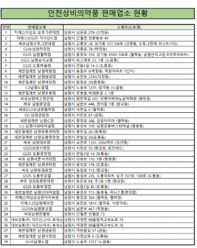 아울러 연휴 기간 동안 의료기관 및 약국 방문이 어렵거나 가벼운 증상일 경우 안전상비의약품 판매업소로 지정된 24시간 운영 편의점(39개소)에서 해열진통제, 소화제, 감기약 등 안전상비의약품을 구입할 수 있다.