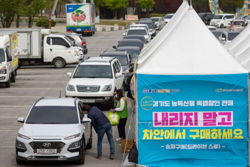 도 농식품유통진흥원은 안성 등 6개 시군 장터와 함께 드라이브 스루 방식으로 농축산물 34톤을 판매했고, 도와 수협은 안산‧화성‧김포 수산물 상설 장터에서 같은 방식으로 수산물 877세트를 팔았다. 또 고양꽃박람회장 상설 장터에서도 5회에 걸쳐 드라이브 스루 꽃시장을 운영했으며 농식품유통진흥원의 온라인 판매로도 286톤의 농산물이 팔렸다.