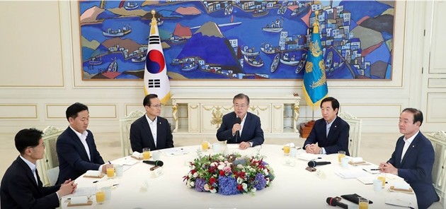 16일 청와대에서 진행된 문재인 대통령과 여야 5당 원내대표 회동에서 문 대통령의 요청에도 불구하고 국회 차원의 `판문점 선언` 비준 동의가 이뤄지지 않았다.