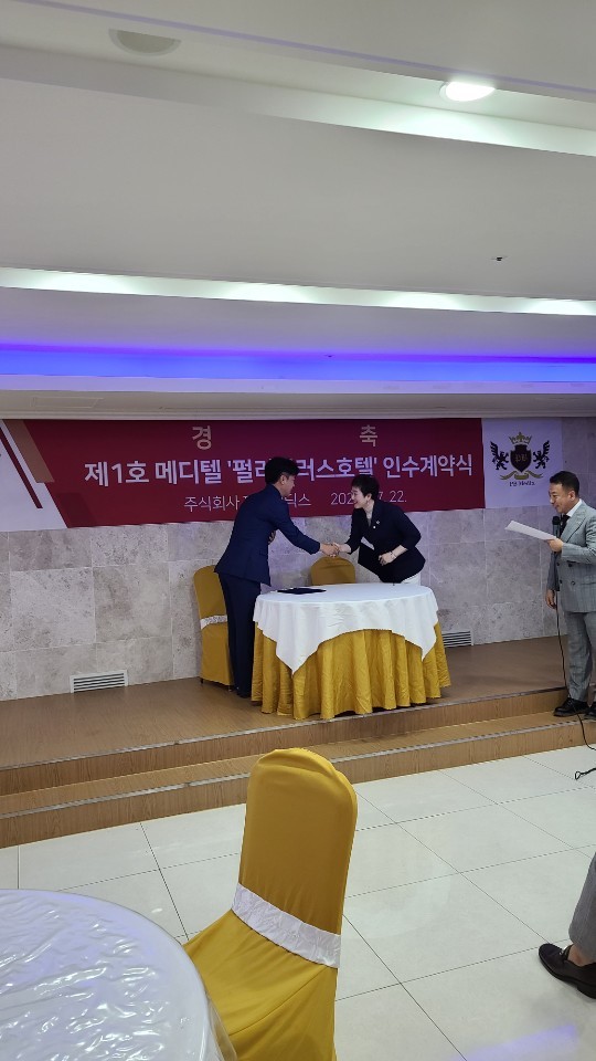 펄리플러스 호텔 인수계약을 22일 이 호텔 회의실에서 체결했다.