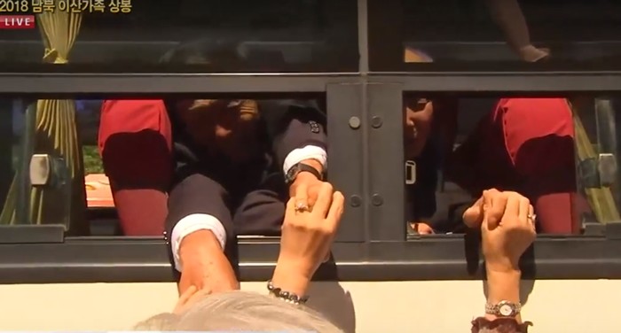 26일 오후 금강산 호텔에서 열린 2차 이산가족 상봉이 끝나고 헤어지는 가족의 모습. <사진=KTV 갈무리> |