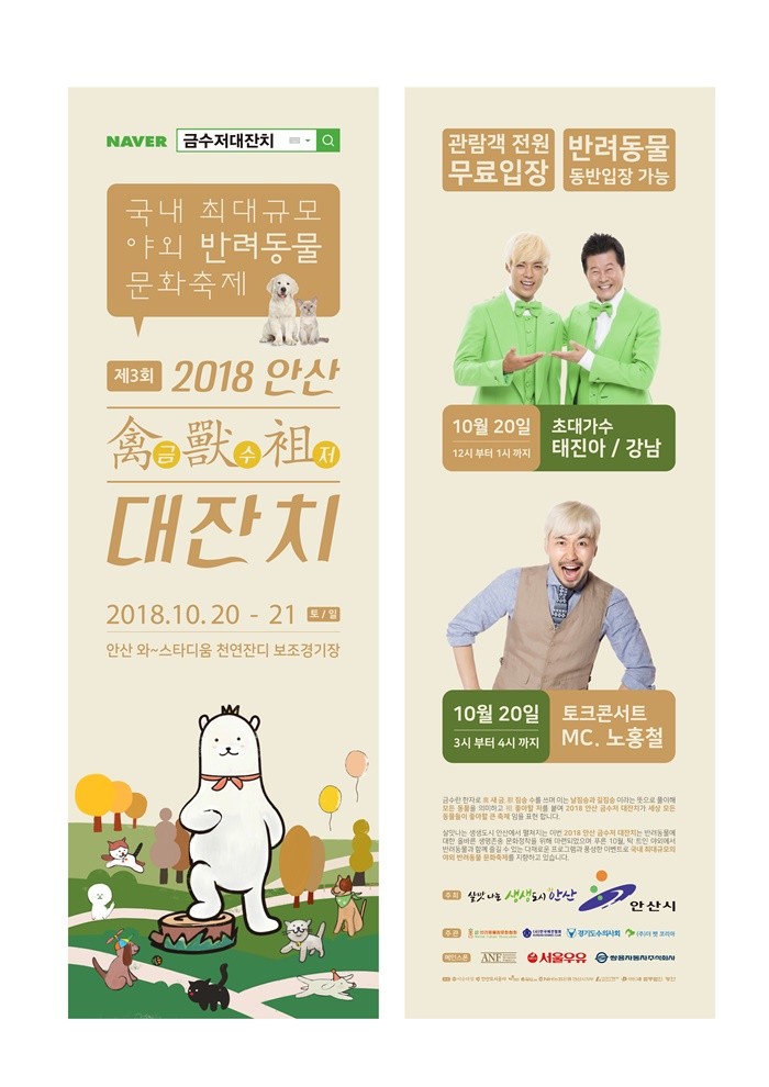 한편, '2018 안산 금수저대잔치'는 '2017 경기 반려동물 어울림 한마당 in 안산(부제:펫케어페스티벌)'에 이어 올해로 3회차를 맞이하는 안산의 대표적인 반려동물 문화 행사로, 지난해에는 약 7만명의 참관객들이 방문했다.
