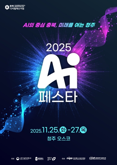 충북도는 청주시, 충북과학기술원과 함께 오는 11월 25일부터 27일까지 청주오스코에서 'AI 페스타 2025'를 개최한다. ‘AI 중심 충북, 미래를 여는 청주!’를 슬로건으로 열리는 이번 행사는 충청권 최대 규모의 디지털 융합 축제로, MS코리아, KT, 에코프로 등 국내외 주요 기업과 도내 혁신기업 등 50여 개 기업·기관이 참여하고, 3,000여 명의 참관객이 함께할 예정이다.