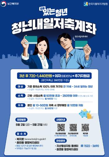 다음 달 2일부터 21일까지 모집… 본인 저축금에 정부지원금과 이자 추가 지원