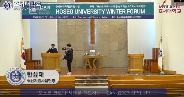[프레스뉴스] 최정현 기자= 호서대학교는 대학혁신지원사업단이 교육혁신 성과확산을 위해 ‘포스트 코로나 시대를 선도하는 I-CAN 교육혁신’이라는 주제로 ‘Winter Forum’을 온라인으로 개최했다고 23일 밝혔다.