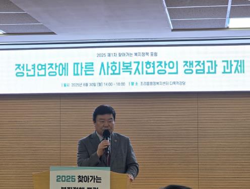 경기도의회 보건복지위원회 이병길 의원(국민의힘, 남양주7)은 2025년 6월 30일 오후 2시, 조리읍행정복지센터 다목적강당에서 개최된 '2025년 제1차 찾아가는 복지정책 포럼'에 참석해 축사를 통해 정년 연장 논의에 따른 사회복지 현장의 현실과 정책적 과제에 대해 심도 있는 입장을 밝혔다.