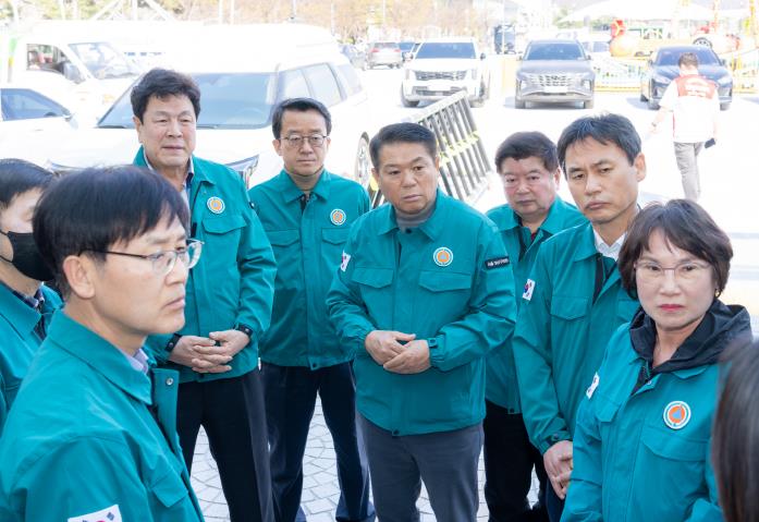 이호귀 의장·이동호 운영위원장·윤석민·황영각·노애자 의원은 산불 피해 현장을 둘러본 뒤, 빗썸나눔에서 후원한 트레이닝복 3,000벌과 간식 500세트를 전달하며 이재민들의 신속한 일상 회복을 응원했다.