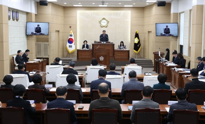 김범규 의장은 개회사를 통해“봄철 해빙기를 맞아 안전사고 위험이 높아짐에 따라, 취약시설에 대한 사전점검을 강화하고 철저한 대비로 안전 관리에 최선을 다해 주시길 바란다”고 당부하며,“추경 심사를 통해 예산이 효율적으로 집행될 수 있도록 면밀하고 꼼꼼하게 검토해 주시길 바란다”며 제1차 본회의를 마쳤다.