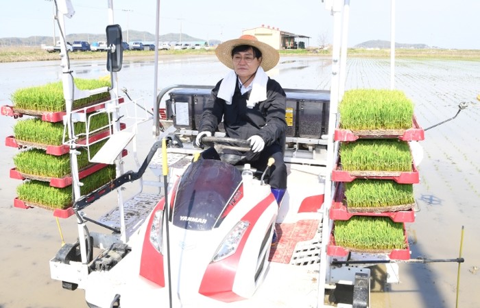 이날 첫 모내기 한 품종은 강들미, 여르미 등 조생종 품종으로 8월 하순에 수확할 예정이다.