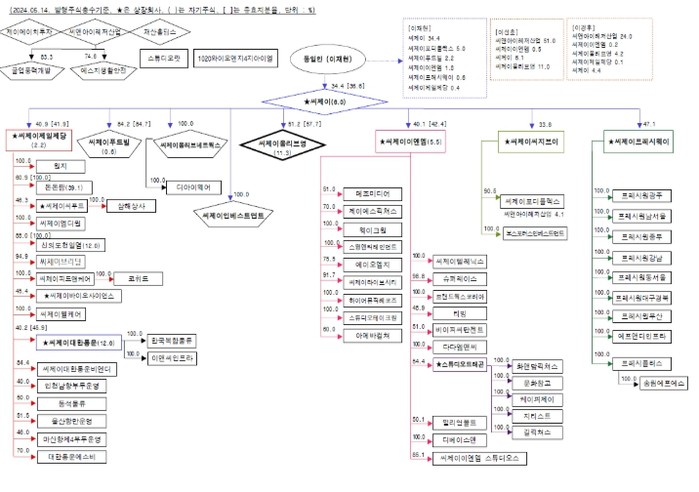 ▲ 기업집단 '씨제이' 소유지분도(2024년 5월 14일기준) |