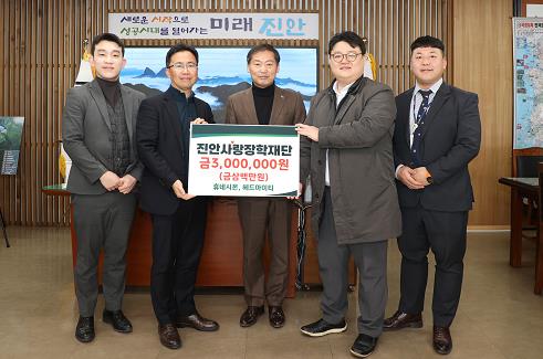 이에 진안사랑장학재단 전춘성 이사장은 “학생들을 위해 기부한 기업에 감사하다. 장학재단에서는 그 뜻을 받들어 지역인재 육성을 위해 소중히 사용하겠다”라고 밝혔다.