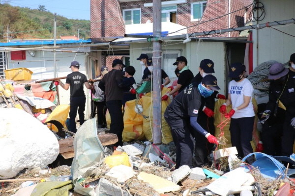 8일 오전에는 임원항에서 태풍으로 인해 떠밀린 폐목재, 폐어구, 일반쓰레기 등을 수거해 마대자루 수십 여개가 수북히 쌓였으며, 오후에는 삼척항에서 집중호우와 태풍으로 항내로 밀려온 부유물을 한가득 수거하는 등 하루 내내 40여명이 비지땀을 흘리며 쓰레기 수거활동을 벌였다.