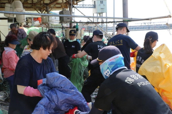 동해해양경찰서(서장 정태경)는 지난 8일 연이은 태풍으로 큰 피해를 입은 삼척시 임원항과 삼척항에서 해상 부유물을 치우는 등 봉사활동을 펼쳤다고 밝혔다.