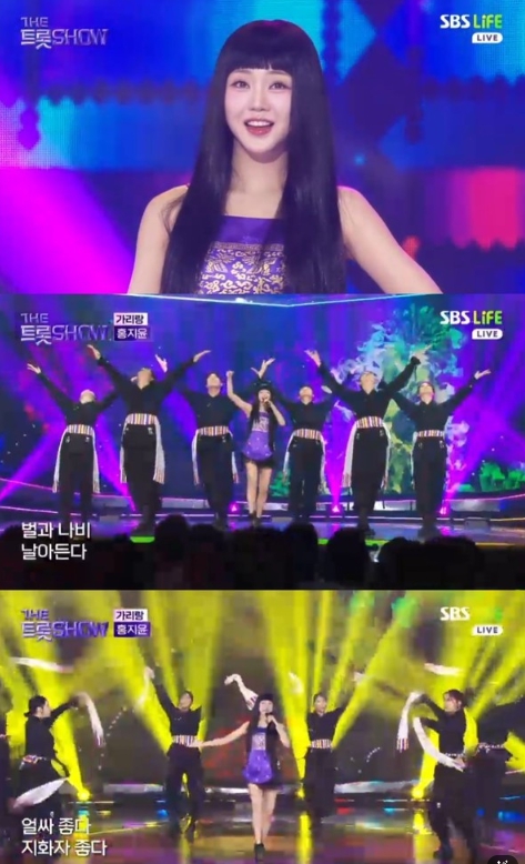 홍지윤은 지난 14일 방송된 SBS M ‘더트롯쇼’에 출연해 새 디지털 싱글 '가리랑' 무대를 선보였다.