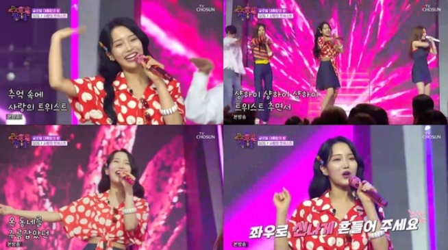이에 김소연은 복고풍 스타일링으로 색다른 매력을 뽐냈다. 화려한 비주얼과 함께 신명 나는 퍼포먼스로 포문을 연 김소연은 시원한 가창력으로 분위기를 띄웠다.