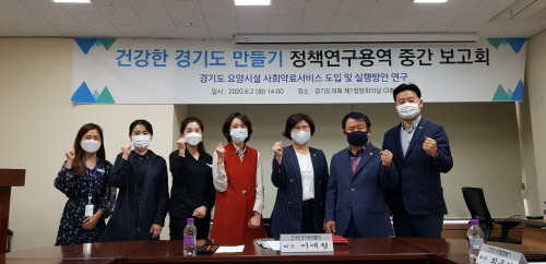 경기도의회 의원연구단체 ‘건강한 경기도 만들기’(회장 이애형, 통합당)는 2일 오후 2시 경기도의회 제1정담회의실에서‘경기도 요양시설 사회약료서비스 도입 및 실행방안’연구용역 중간보고회를 가졌다.