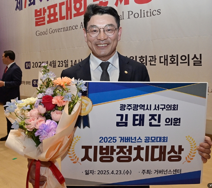 광주광역시 서구의회 김태진 의원이 23일 국회의원회관 대회의실에서 거버넌스 지방정치대상이 주관하는 수상식에서 갈등해소·사회통합 분야에서‘최우수상’을 수상하는 영예를 안았다.
