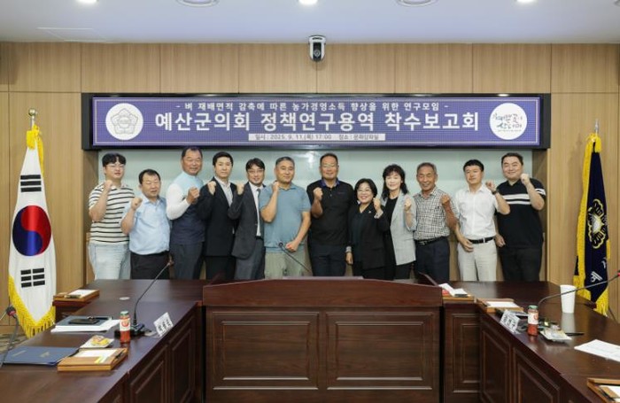 예산군의회는 지난 11일 군의회 문화강좌실에서 '벼 재배면적 감축에 따른 농가경영소득 향상을 위한 정책연구용역' 착수보고회를 개최했다.