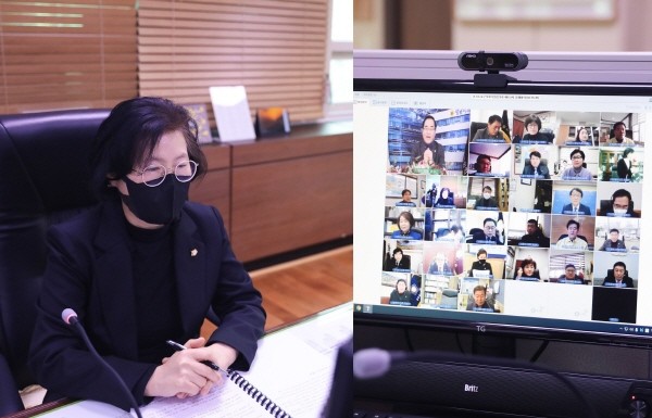 박은경 의장은 화상으로 안건에 대한 시의회 차원의 의견을 제시하는 등 참여자들과 진지한 토론을 이어갔다.