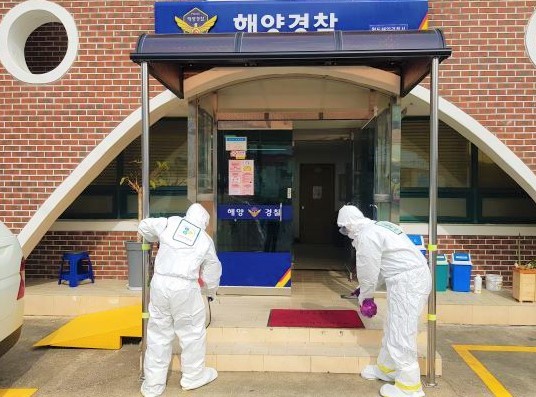 완도해경에 따르면 지난 23일 현장대책반을 구성하고 외국적 선박 해상 검문검색, 응급환자 이송 등 감염 위험요소에 대한 예방대응수칙과 의심증상 발생 시 대처 요령 등 자체교육 실시하고 경찰서를 출입하는 방문객을 위해 1층 민원실에 마스크와 손소독제 비치하고 청사, 경비함정, 파출소 등 모든 근무지를 대상으로 방역소독을 실시하는 등 감염병 예방활동을 펼치고 있다.