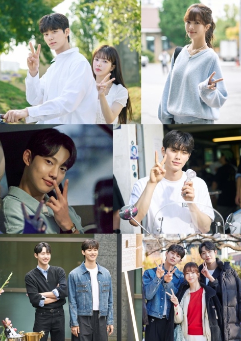 극 중 바니의 '오빠들'로 활약하는 이채민(황재열 역)과 조준영(차지원 역)의 투샷도 훈훈함을 자아내고 있다. 훤칠한 피지컬과 따뜻한 미소에서 바니가 두 남자에게 관심을 가질 수밖에 없는 이유를 짐작게 한다. 또한 카메라와 눈을 맞추며 브이를 그리는 배우들의 모습은 청량한 청춘의 단면 그 자체를 보여주고 있다.