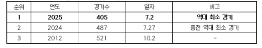 ▲ 역대 700만 관중 달성 최소 경기수 순위 |