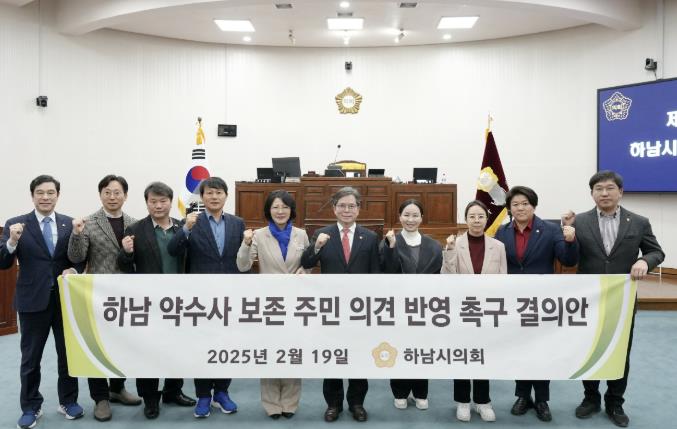 | ▲ 하남시의회는 2월 19일 제337회 제2차 본회의에서 금광연 의장이 대표 발의한 ‘하남 약수사 보존 주민 의견 반영 촉구 결의안’을 채택했다. (사진_하남시의회 제공) |