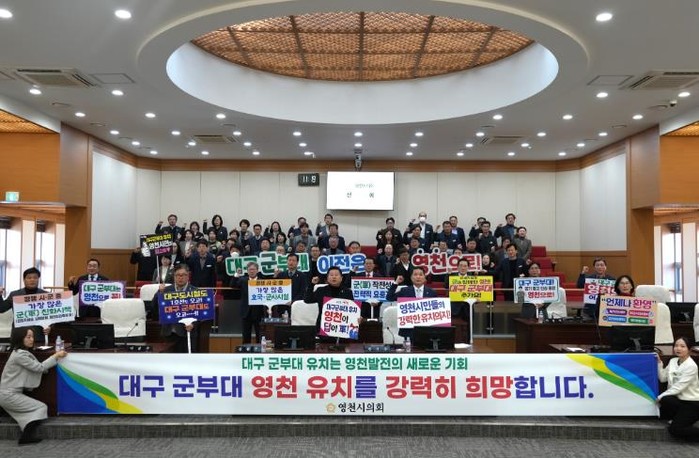 이어 채택된 대구군부대 유치 촉구 결의문에는 영천시의회가 영천시민과 한마음 한뜻으로 군부대 영천 유치를 적극 지지하고, 이로 인해 인구 유입 촉진과 지역 경제 활성화는 물론 주거·교육 환경 개선 등 영천의 지속 가능한 발전의 기반을 마련할 것이라 기대하며, 영천시의회는 대구 군부대 통합 이전에 필요한 제반 사항 해결과 지원에 적극 협조하고 동참할 것임을 다짐하는 내용이 담겨 있다.