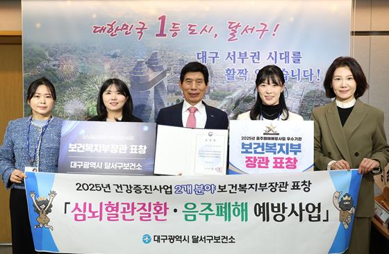 대구 달서구보건소가 음주폐해예방사업 우수사례 기관 표창과 심뇌혈관질환 예방관리 유공기관 표창에서 각각 보건복지부 장관상을 수상하며, 2개 부문 동시 수상이라는 성과를 거뒀다.
