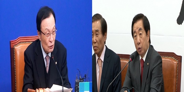 ▲이해찬 더불어민주당 대표(왼쪽)와 김성태 자유한국당 원내대표(오른쪽). <사진=곽정일 기자> |