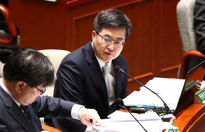 ▲6일 국회에서 열린 예산결산특별위원회 종합정책질의에 참석한 김동연 부총리겸 기획재정부 장관. <사진=곽정일 기자> |