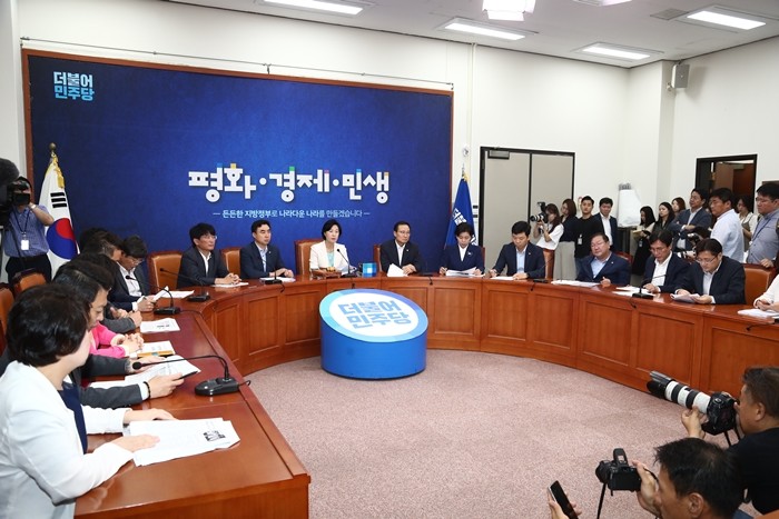 최고위원회의 진행 중인 더불어민주당 지도부. <사진=곽정일 기자> |