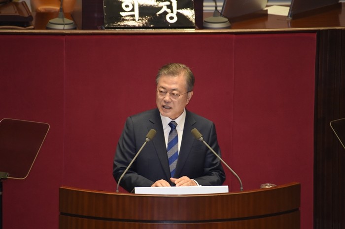 ▲1일 국회에서 문재인 대통령이 2019년도 예산안 시정연설을 하는 모습. <사진=곽정일 기자> |