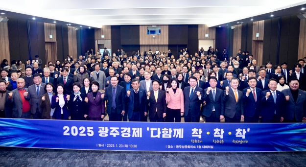 광주광역시는 23일 광주상공회의소 대회의실에서 경제단체, 산업계 등 76개 기관·단체와 함께 ‘2025 광주경제 다함께 착착착(착한소비·착한금융·착한일자리) 광주’를 개최했다.