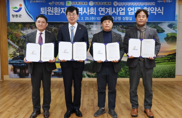 장흥군은 지난 25일 군청 상황실에서 퇴원환자의 지역사회 안정적 복귀를 지원하기 위해 장흥종합병원, 장흥우리병원, 장흥통합의료병원과 '퇴원환자 지역사회 연계사업' 업무협약을 체결했다고 밝혔다.